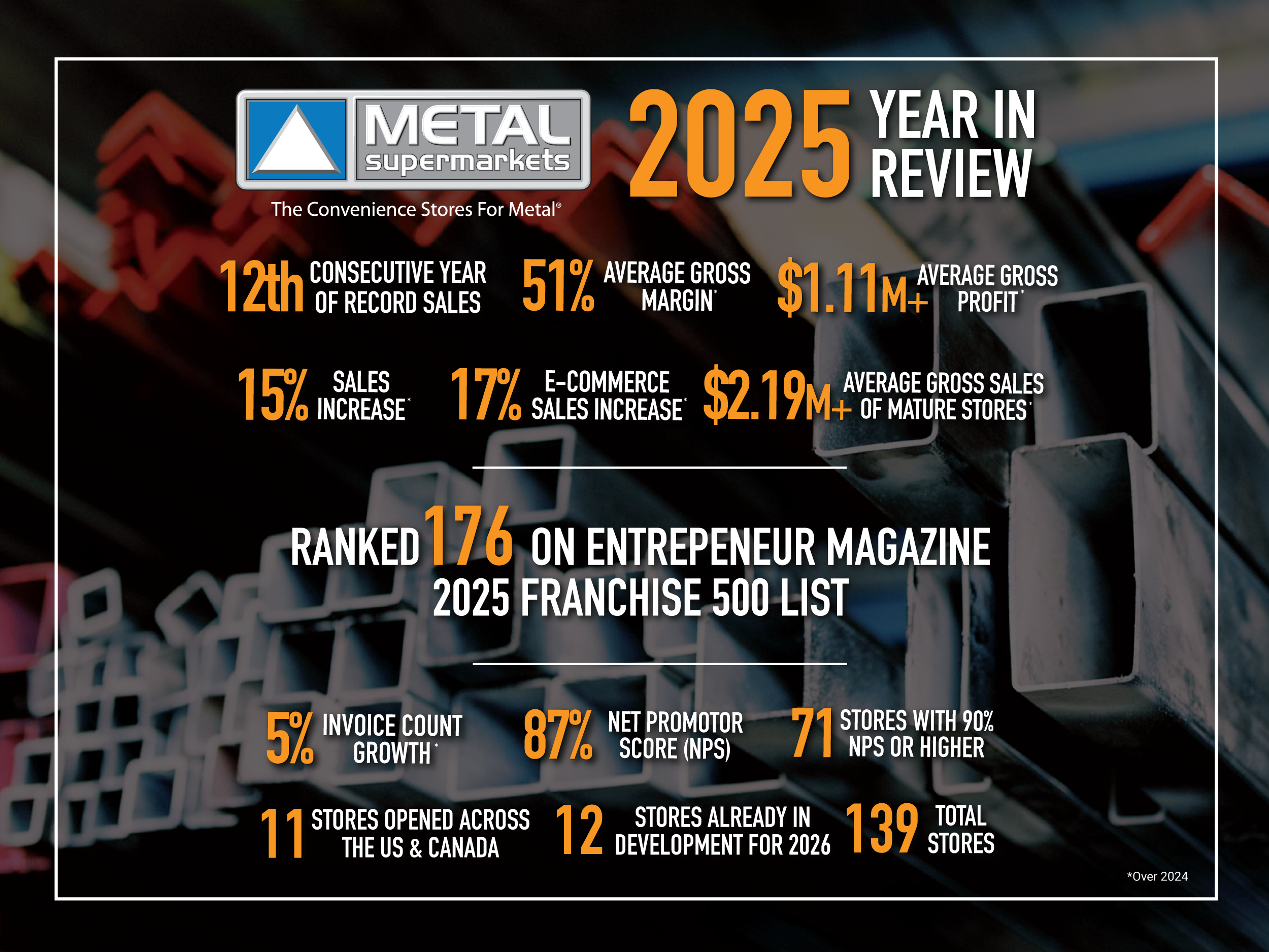 Each Metal Supermarkets location offers solutions to customers’ metal needs in both the business-to-business and business-to-consumer categories. With a diverse product base and no minimum order quantity, Metal Supermarkets has earned long-lasting relationships by delivering world-class customer experiences.